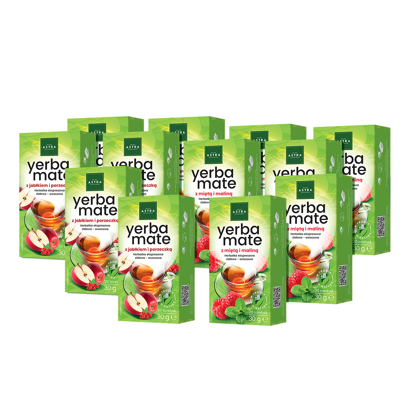 Zestaw 12x Yerba Mate 20 tor. ex.(6x z miętą i maliną + 6x z jabłkiem i porzeczką)